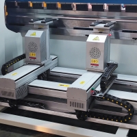 - Thiết kế dừng đồng bộ linh hoạt cho phép máy uốn tấm cnc đạt được độ chính xác cao và dễ sử dụng nhờ bộ điều khiển lập trình DELEM.