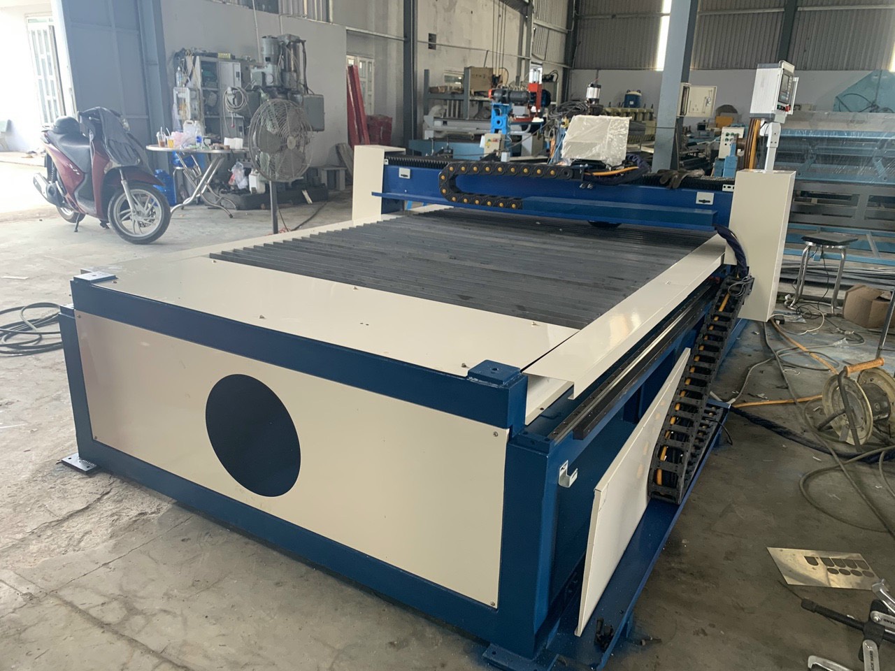 • Sau khi đã cắt các tấm nguyên vật liệu với kích thước chuẩn, các tấm nguyên liệu được chuyển sang máy cắt CNC Plasma.